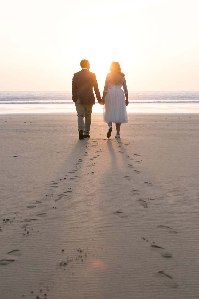 At Vicki & Leo’s wedding here, the sun shone on them and their 12 guests all day. We ate great food. We wandered on the beach (several times) and the tide nearly caught us out (several times). Vicki had a Marilyn Monroe moment. The sun shone & shone.